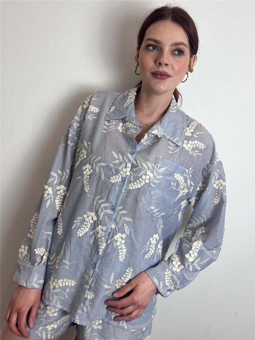 Camicia A Righe Con Ricami - Souvenir cod. D39V1454