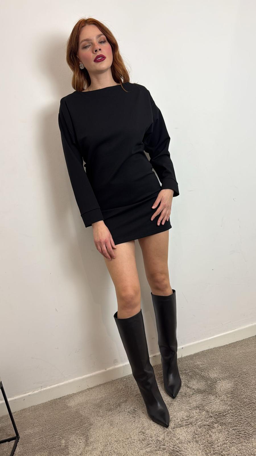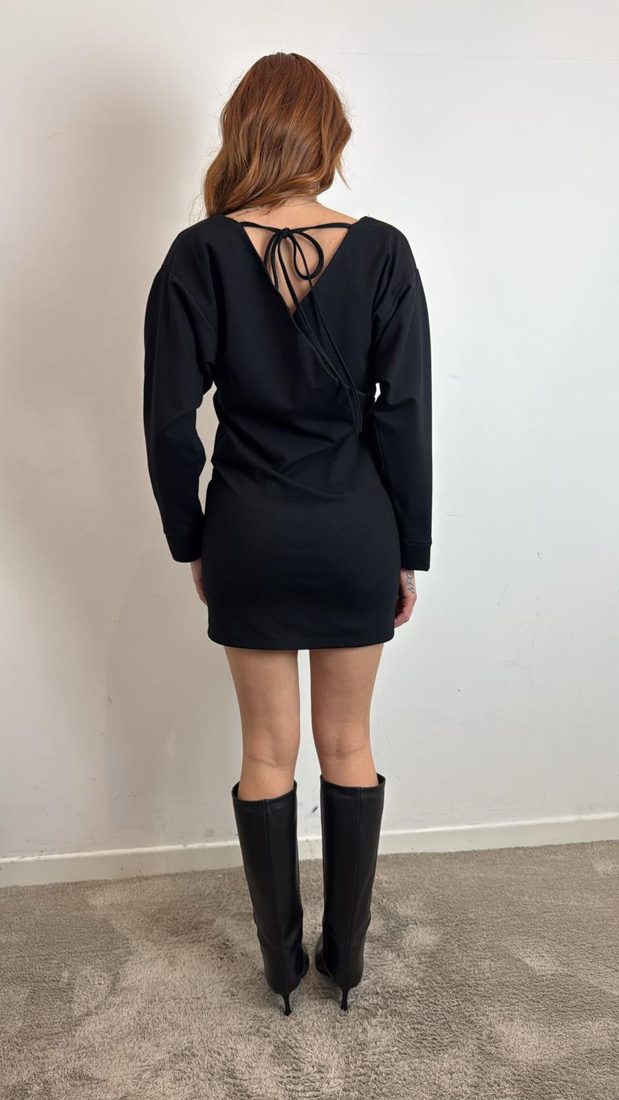 Abito Mini Scollo A Incrocio Sul Retro Punto Milano - Vicolo cod. TF0903  color:nero