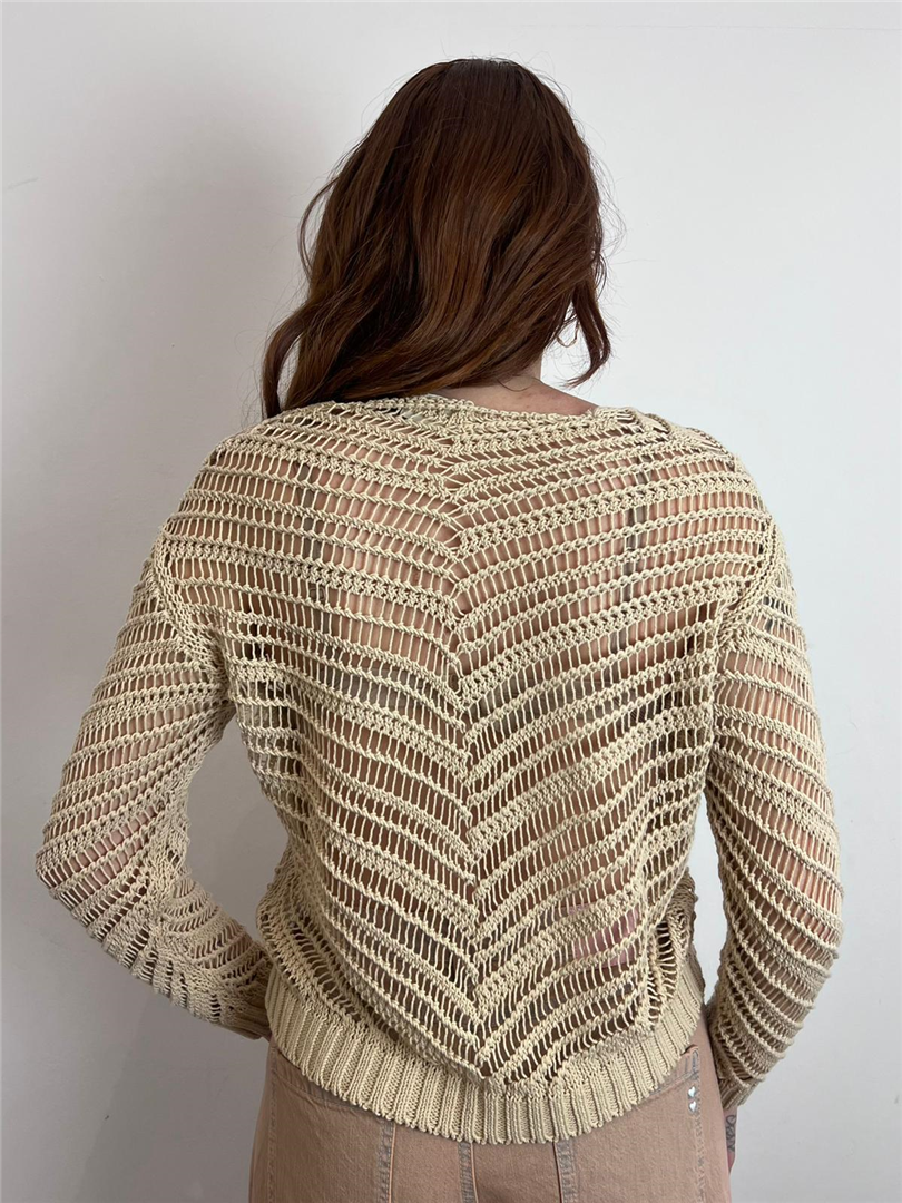 Maglia Scollo A V Traforata - Vicolo cod. 3AB3023  color:burro