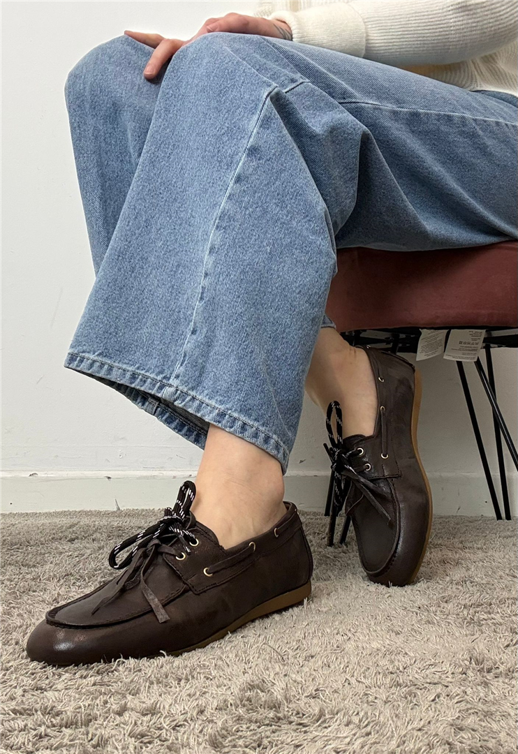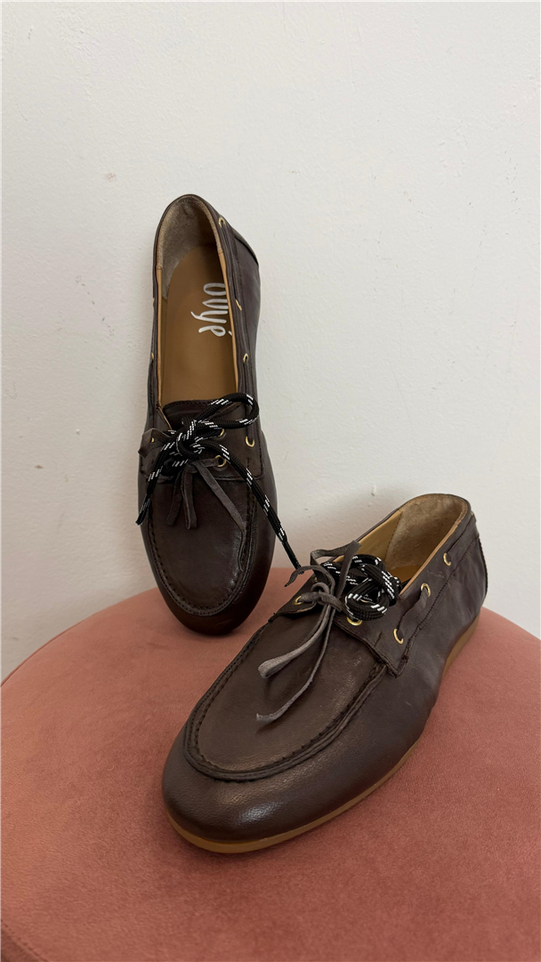 Il mocassino donna Ovyè modello barca in colore testa di moro è un classico rivisitato per la collezione Primavera Estate 2026. Realizzato con design essenziale e doppio laccio frontale, unisce comfort e stile in un modello versatile e contemporaneo.