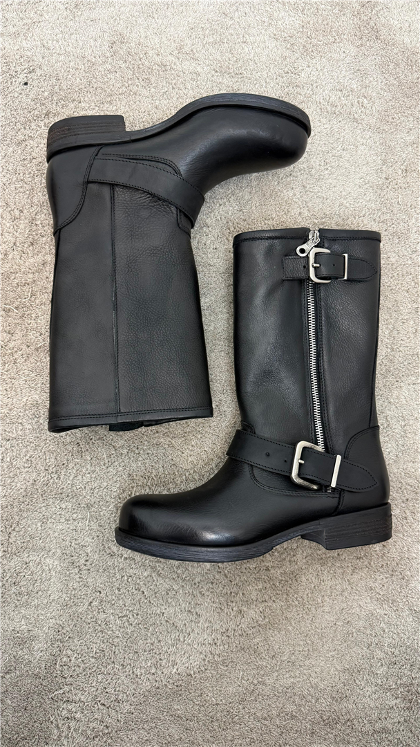 OVYE-BIKER IN PELLE CON FIBBIE E ZIP NEL GAMBALE TACCO CM 4