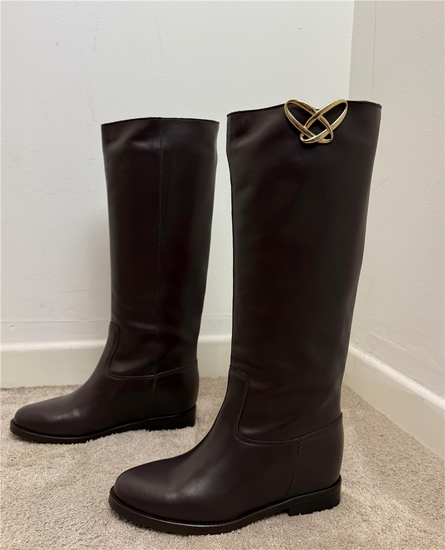 OVYE-STIVALE IN PELLE CON GAMBALE ALTO APPLICAZOONE LOGO DORATO