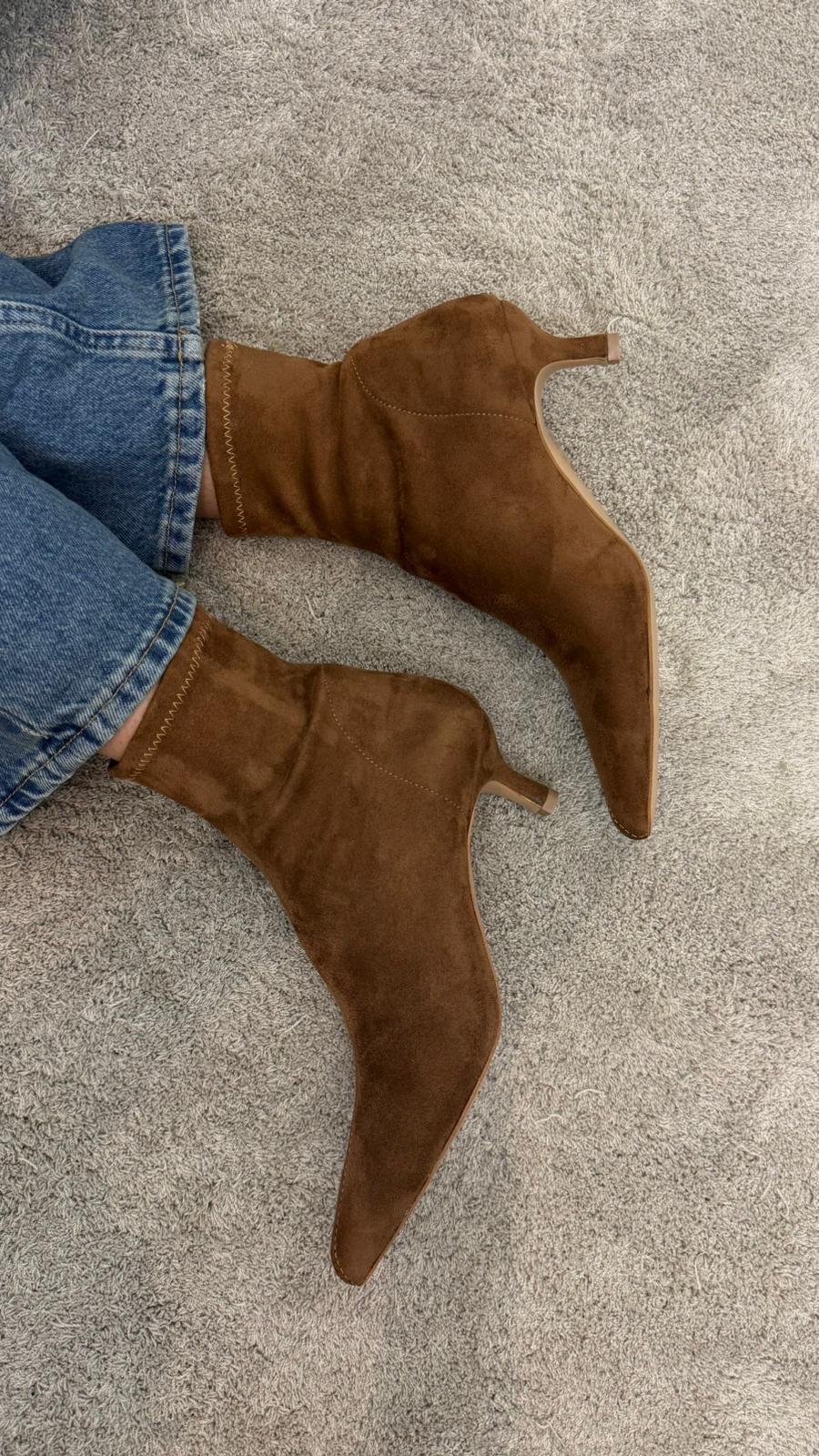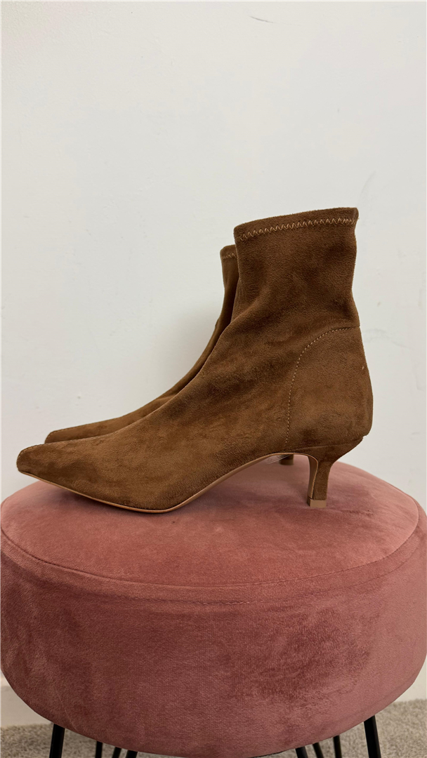 Gli stivaletti donna Ovyè in camoscio stretch sono il modello perfetto per chi cerca comfort e silhouette slanciata. Il materiale elasticizzato avvolge la caviglia valorizzando la linea della gamba, mentre il tacco medio da 5 cm garantisce stabilità e comodità per tutto il giorno.