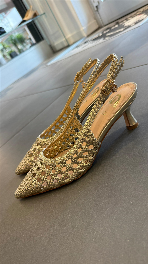 Slingback Lavorato Intreccio Con Cinturino Regolabile Tacco 5 - Gold&gold cod. GD246