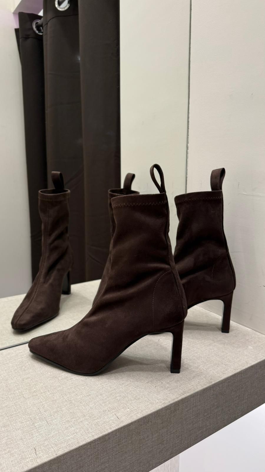 Tronchetto Strectch In Camoscio-Ovyè hanno un aspetto sofisticato e elegante, perfetti per occasioni speciali o per un look alla moda.tacco cm 8