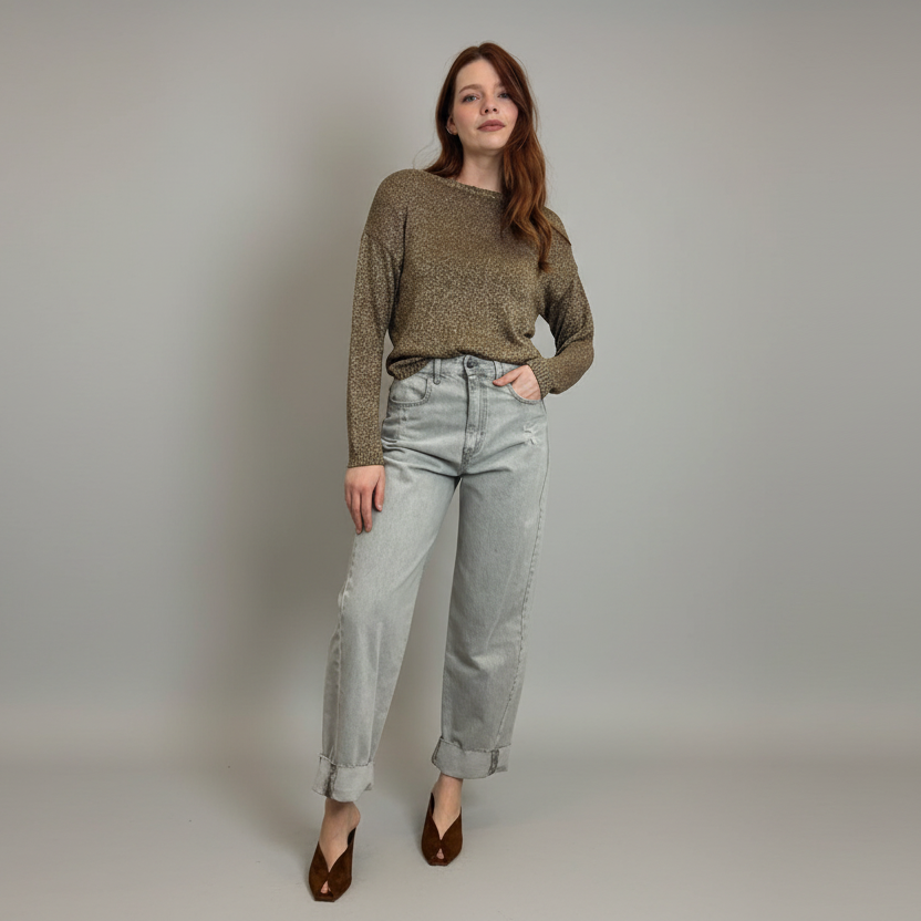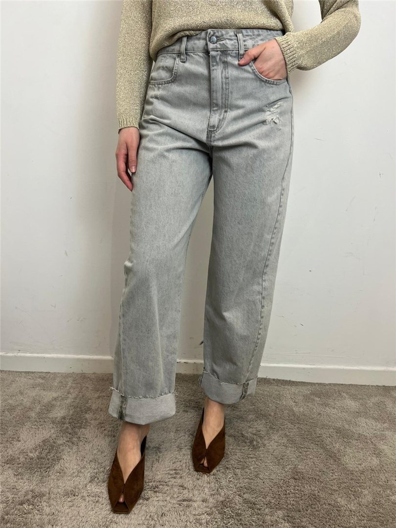 Jeans Souvenir modello balloon in denim grigio chiaro. Vestibilità ampia e confortevole con vita alta e gamba morbida che si restringe alla caviglia, per un look contemporaneo e rilassato.